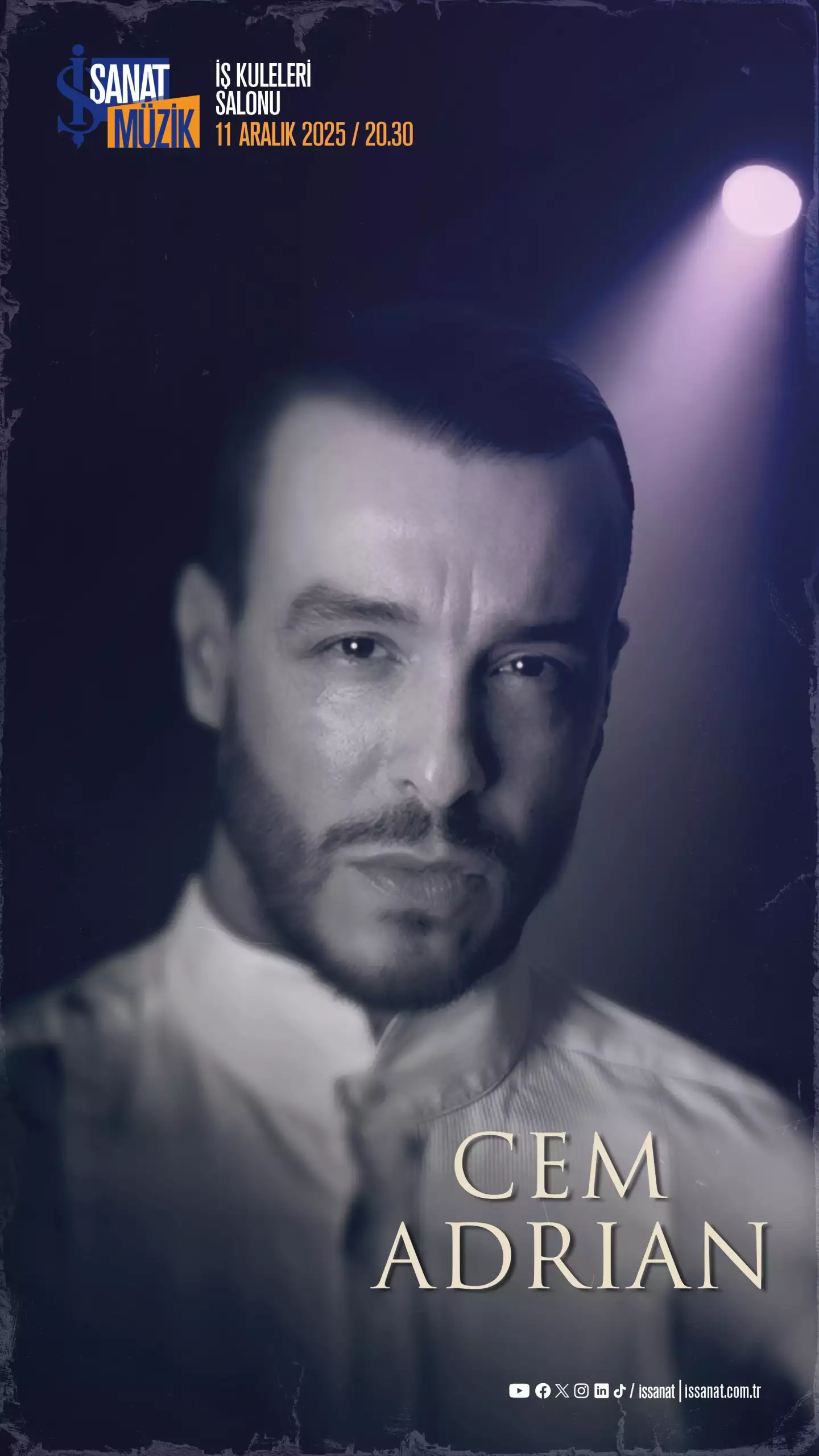 Vokal performansı, besteleri ve şarkı sözleriyle kısa sürede kendine has bir hayran kitlesi yaratan Cem Adrian bu kez İş Sanat sahnesinde! Adrian, 11 Aralık Perşembe 20.30’daki konserinde zengin müzikal birikimini İş Sanat seyircileriyle paylaşacak.