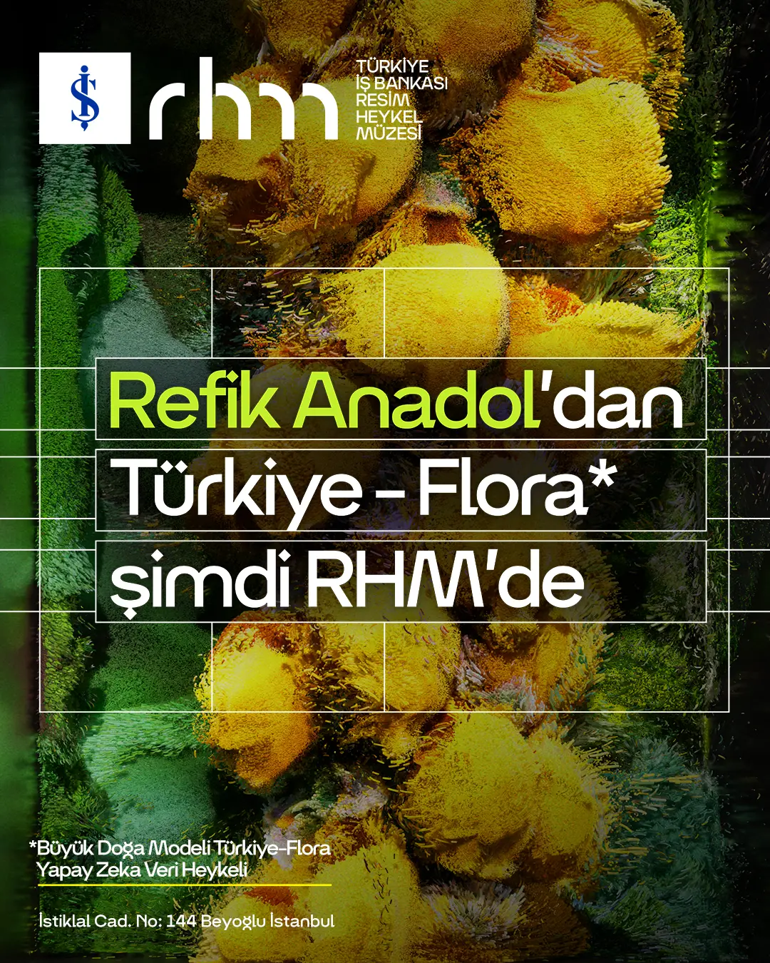 Türkiye İş Bankası Resim Heykel Müzesi, ikinci yaşını koleksiyona eklenen ilk dijital eseri, Refik Anadol imzalı Büyük Doğa Modeli Türkiye – Flora ile kutluyor. “Türkiye – Flora”, müze koleksiyonuna eklenen ilk yapay zekâ veri heykeli olarak yerini aldı. Yapay zekâ, büyük veri ve algoritmaları sanatla buluşturan eser, Türkiye’nin endemik türlerinin kırılgan güzelliğine odaklanıyor.